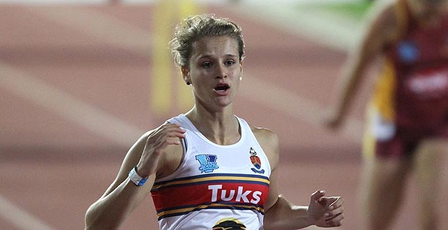 The Tuks runner Rikenette Steenkamp provided the biggest highlight of an explosive night at the Coetzenburg athletics…