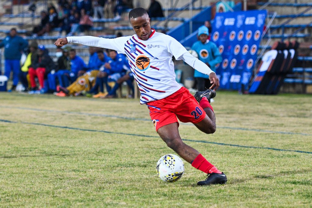 The University of Free State hosted the Vaal University of Technology in the early kick-off of round three of Varsity Football at Xerox Shimla Park. The game between fourth-placed Kovsies and third-placed VUT was a tight affair for large parts but came to life in the second stanza. The home side drew first blood in the 64th minute when Sello Diphoko finished off a fine solo run with a powerful shot from outside the box that hit the inside of the post before going into the back of the net. Just four minutes later Kovsies doubled their lead, with Diphoko scoring a rebound from close range after the initial shot was saved by the VUT goalkeeper. However, VUT pulled one back in the 74th minute when substitute Manuel Makae benefited from several errors in the Kovsies defence.