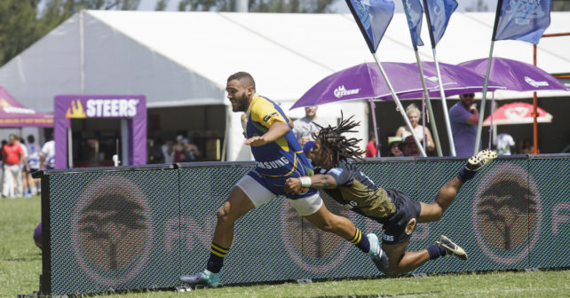 UWC’s captain and talisman Verno Treu showed his sevens pedigree as he chased down a kick from within his own half to score the opening try.